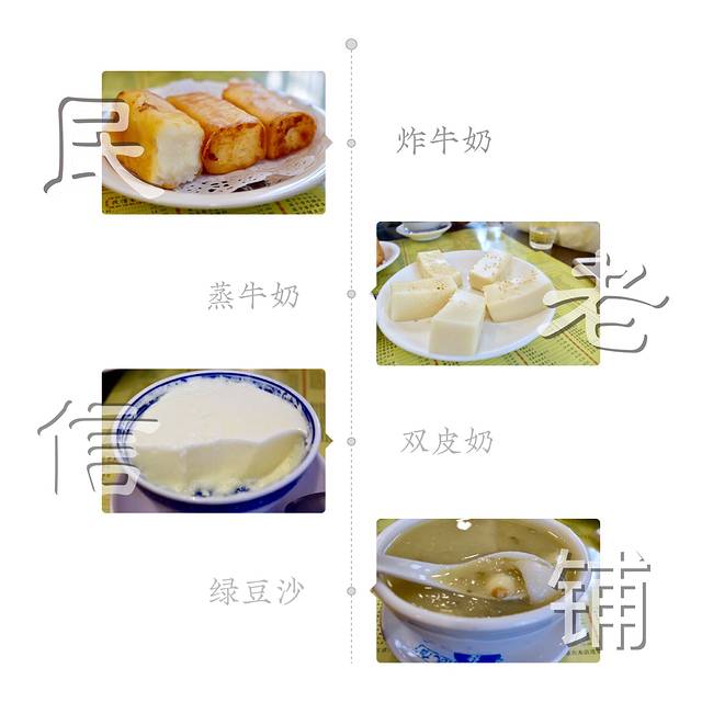 民信的蒸牛奶、炸牛奶与众不同,奶块有韧性有弹力,甜度适中。其他店做出的炸牛奶在油炸的高温下、奶块会熔成流浆状,但民信的不同:外层热脆、里层奶块还呈凝胶状态。