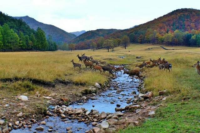 金山屯鹿苑,与梅花鹿零距离亲近,与小动物做朋友。群山美景环绕,绿草茵茵,景色宜人。鹿场采取半开放式,一群群马鹿、天山马鹿、梅花鹿或在山泉边嬉戏,或在密林中倘徉,常年积山川大地之灵气,蓄花草树木之零华,与野生鹿并无二致。