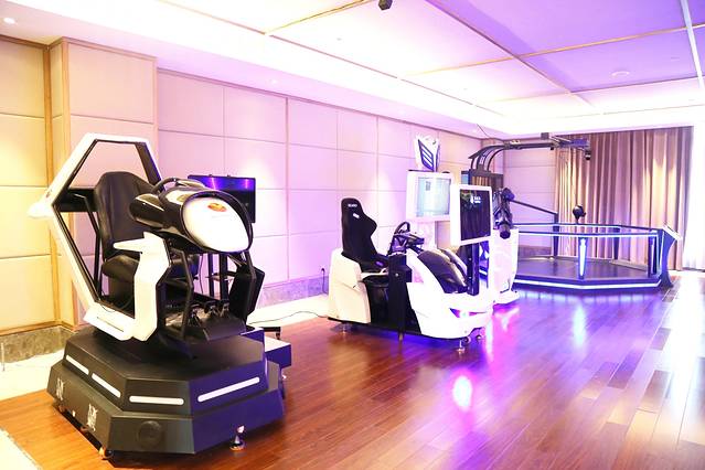 老公还在二楼发现了“新天地”——VR高科技体验馆,数十种大型VR设备,令游戏控的他喜出望外。电子射击、丛林探险、空中飞车……他直呼:“这可比手机上的“吃鸡”游戏好玩多了!”