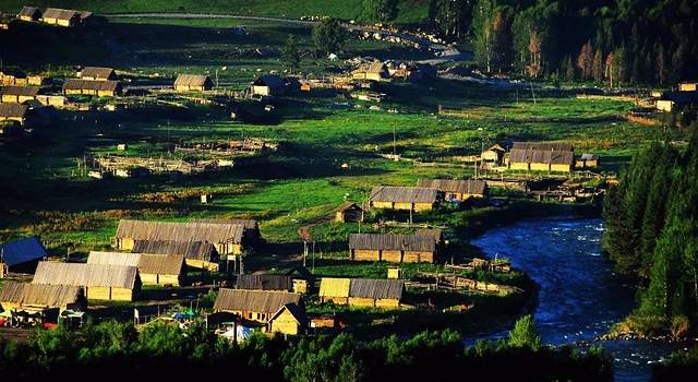 成片的桦树林在夕阳的余晖下闪耀着光芒