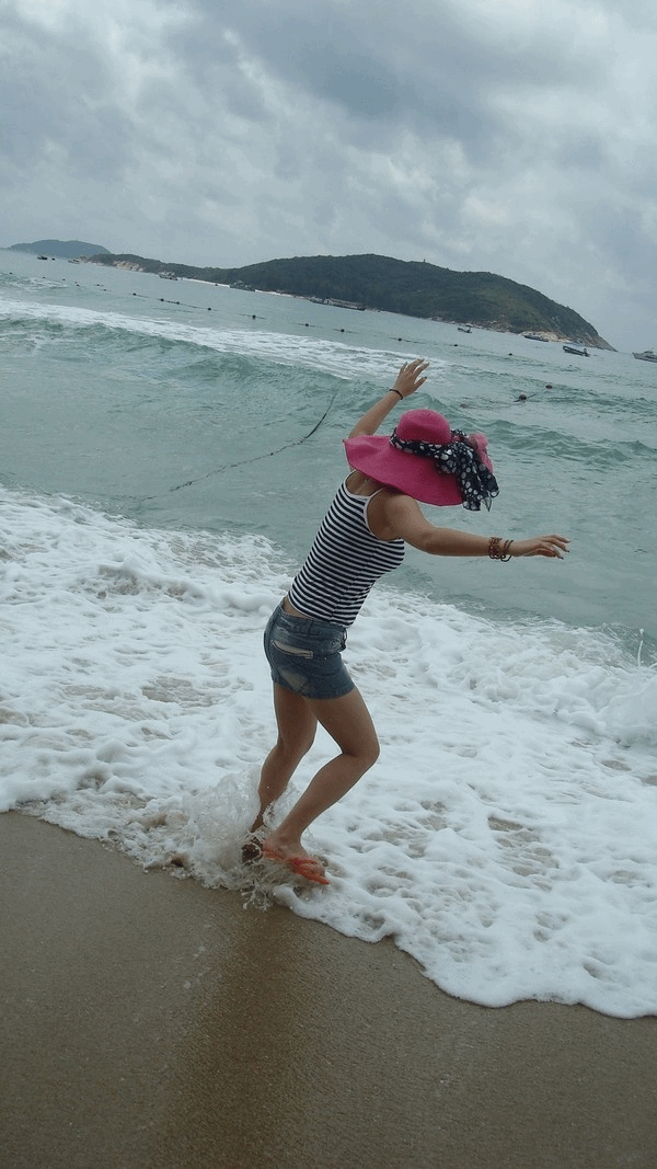 环岛一周仅半小时,回到沙滩。想晒太阳,发呆吗,人多,想在海边找到空着的太阳伞,是困难的。所以坐进茶座里喝茶,远远的看海,也是一种选择。