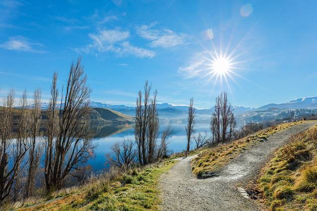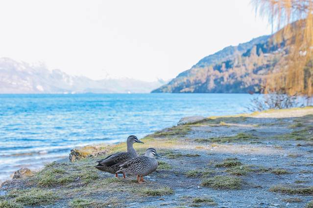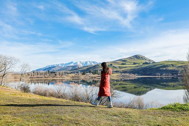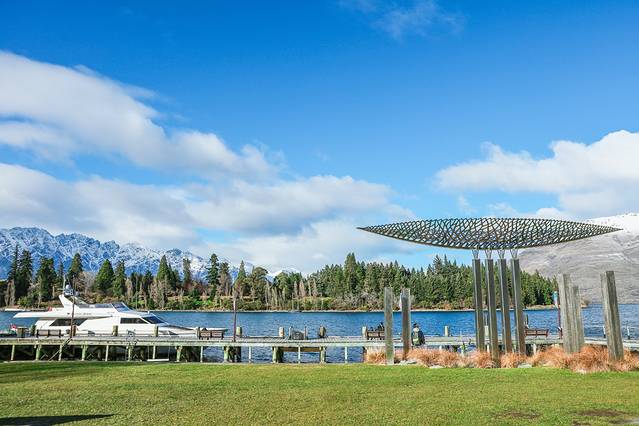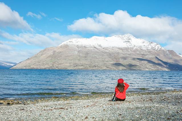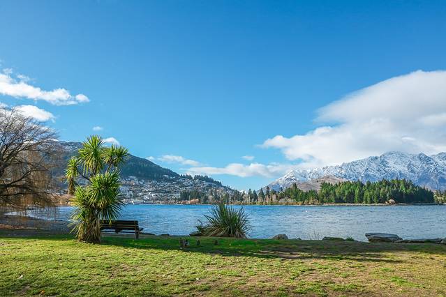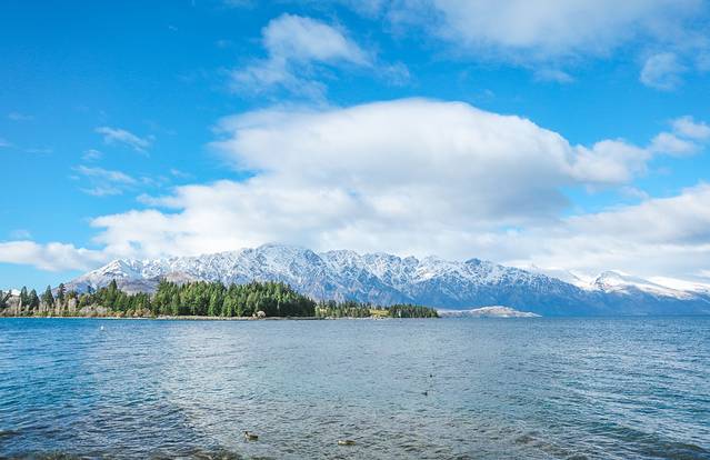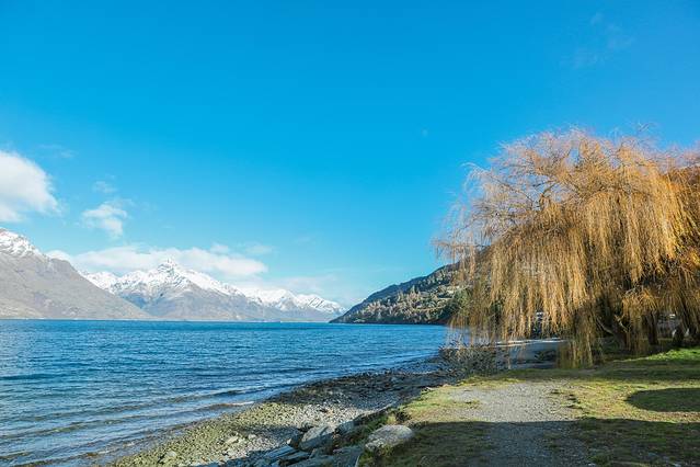 市区附近的瓦卡蒂普湖(Lake Wakatipu)是座深而蓝的高山湖。壮丽的山脉上几座覆着白雪的绿棕色山点缀于背景中。从 皇后镇 到山顶,则是一片绿油油的色彩。