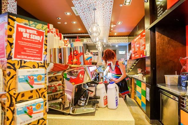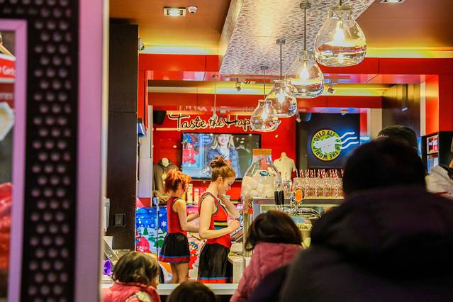另外一个亮点就是店里的姑娘啦,活力满满,笑容甜美。如果你仔细观察就会发现,他们来自不同的国家,衣服上的胸针标记了他们的国籍哦。