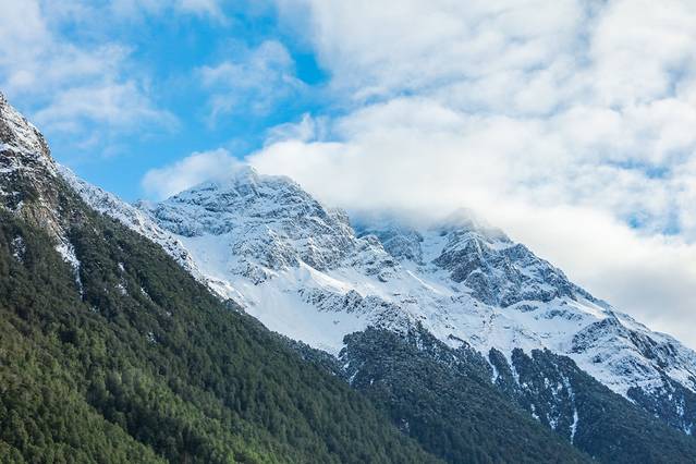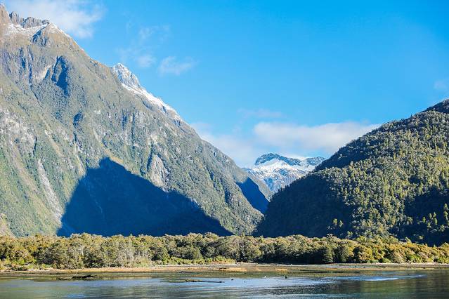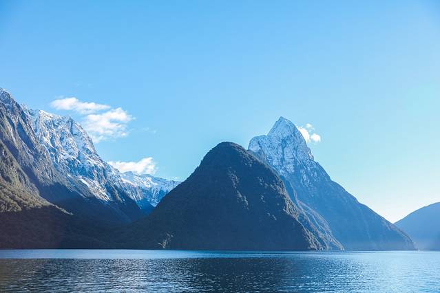 米尔福德峡湾 被认为是1000年前由毛利人发现的, 米尔福德峡湾 由冰川切割,海水倒灌注入形成。整条峡湾长达16公里,两侧壁立万仞,标志性的教冠峰高达1692米,是全世界从海平面直接拔起的最高山峰之一,巍峨雄壮,也是 新西兰 的地标之一。