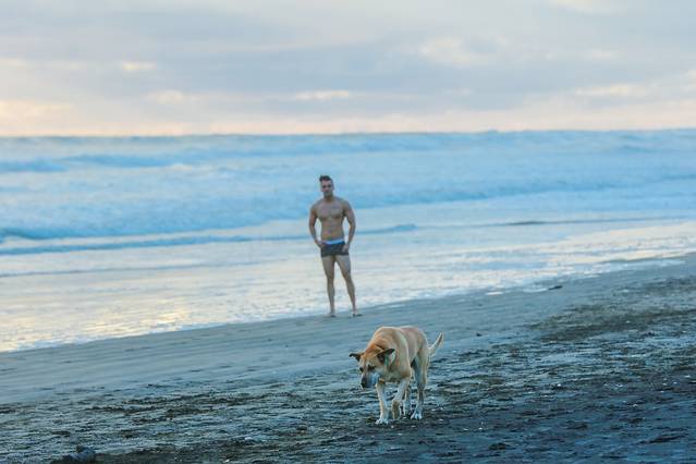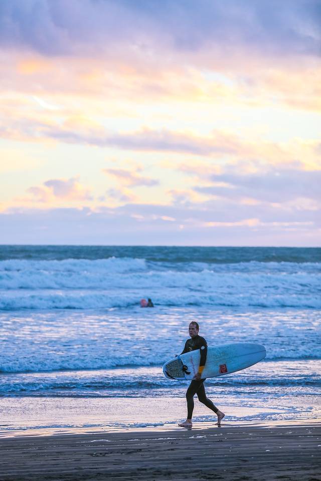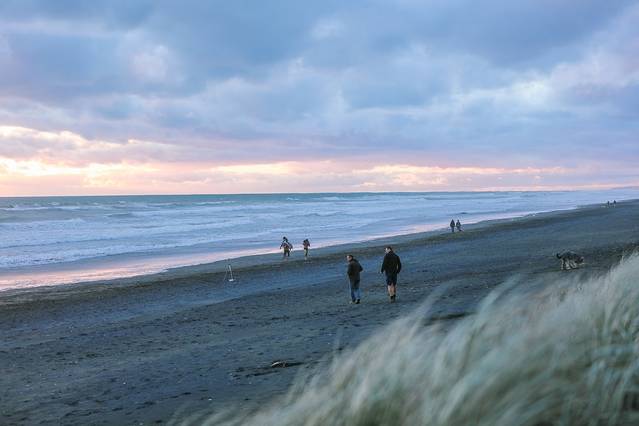 这里的沙滩是 奥克兰 有名的黑沙滩,许多冲浪爱好者都到这里进行水上运动。当然还有不少摄影爱好者在这里蹲守机位,可能是今天风特别大,沙滩上的人并不多,多数都是带着狗狗散步的情侣档。