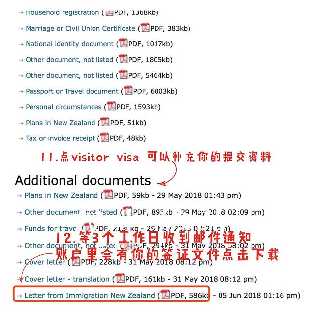 最后一步就是缴费,一共165纽币,大概折合人民币700多元,比旅行社便宜好多!我是用的银联卡付费的。如果要补充材料的,点击"visitor visa" ,进入以后可以补充上传文件。