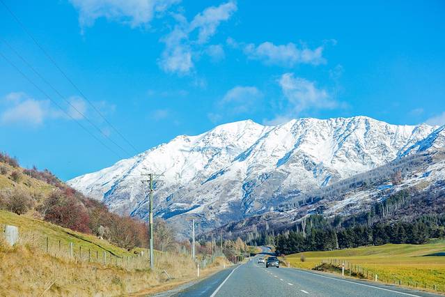 从Farmstay开车出来,雪山就在眼前,虽然已是冬天,路旁的草是土黄色的,但是我却格外喜欢眼前这样的画面,配上车里的放着南征北战的《我的天空》,瞬间大家的心情也High了起来。