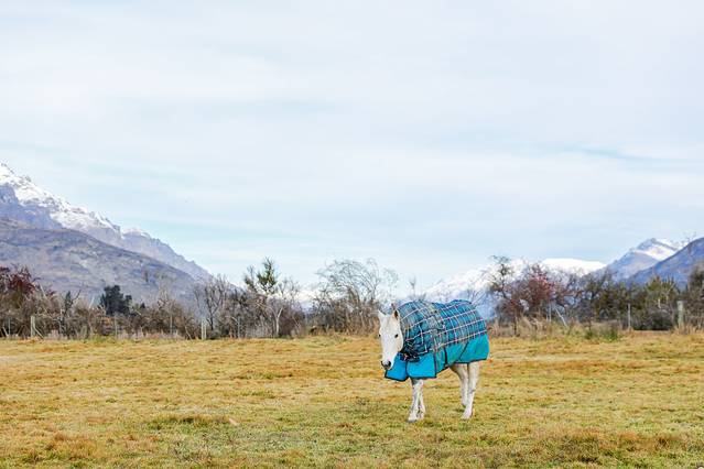路过的农庄上的马儿也穿上了防寒服。不得不说在 新西兰 ,动物的生活都这么惬意完美呀。