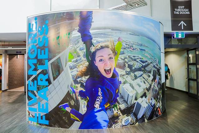 不过我们的小豆绝对不满足于只是看看风景这么简单,天空塔上还有超级刺激的极限运动:Skywalk和SkyJump,由于这两个运动对于天气要求也非常高,大风,大雾大雨等天气都会导致项目关闭。不过我们运气很好的是,SkyJump还是可以玩的。
