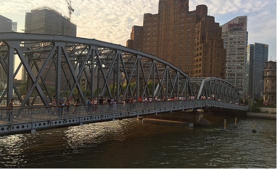 临近下午的时候,同事说请我吃饭,我们就去了浦江饭店,巧了,正好路对面,就是我心心念念了好久的外白渡桥,所以我们就没有吃饭,直接去逛了逛。不过外白渡桥虽然没有电视中那么美,但是也不是特别失望,这个江水好绿,还有些污染。