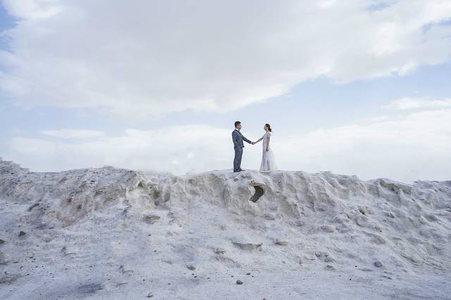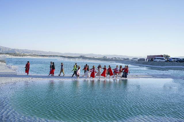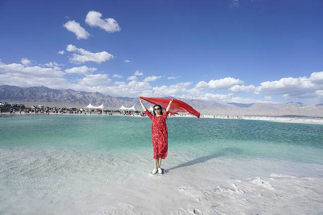 之前在网上看到攻略便说茶卡盐湖最适合晴天时间游玩,而且最好是连续几天都是晴天之后来,那时湖水结晶度很高,会看到洁白的盐湖上覆盖一层薄薄的卤水,景色和倒影最为清晰纯净。天公不作美,我们来的时候茶卡盐湖是阴天,而且刮着大风,但是这也丝毫没有影响我们游玩的兴致,因为我始终相信,旅行带给人的是一种感受,只要你用心,处处都是美景,但倘若你无心欣赏,再美的风景在你眼里也只是过客。