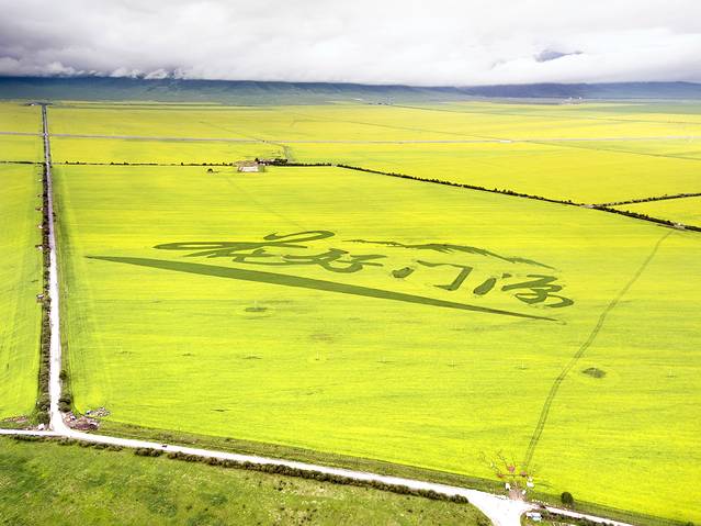 刘老师用他的航拍镜头记录下了门源独特的美,像不像一支箭,指引着人们前来观赏门源油菜花的美;抑或像一条鱼儿,在花海里尽情的撒欢。