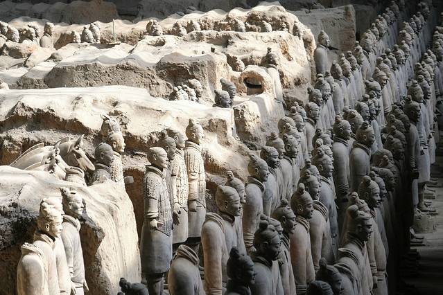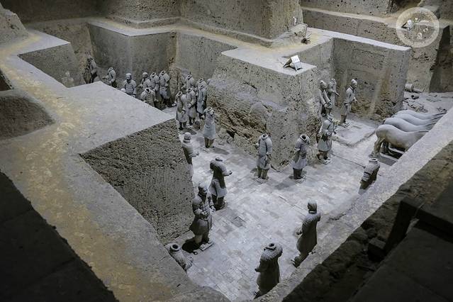 相传秦始皇嬴政从13岁即位时就开始营建陵园,前后将近使用了72万人力,修筑时间长达38年,工程浩大。直至秦始皇去世陵园都未修建完成,由秦二世胡亥继续修建1年多才完成。传闻中,秦始皇耗费无数人力物力财力,为自己建造了一个地宫,而兵马俑就是地宫的守卫者。