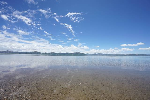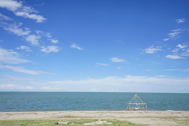 坐在青海湖边,任温暖的风抚摸着我的脸庞;一望无际的青海湖,伴着阵阵浪花,诉说着她那动人的故事。据传,1000多年前,唐蕃联姻,文成公主远嫁吐蕃王松赞干布。临行前,唐王赐给她能够照出家乡景象的日月宝镜。途中,公主思念起家乡,便拿出日月宝镜,果然看见了久违的家乡长安。她泪如泉涌。然而,公主突然记起了自己的使命,便毅然决然的将日月宝镜扔出手去,没想到那宝镜落地时闪出一道金光,变成了青海湖。