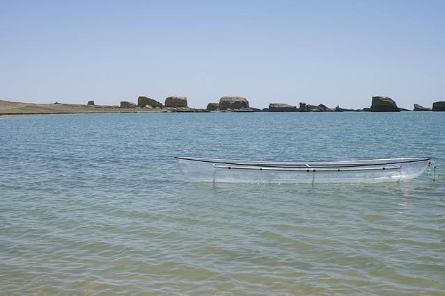 在水上雅丹的中心景区湖面上飘着一艘透明船,可以选择另外交费上船拍照,是曾想阳光照在水面上,泛舟湖面上,俯瞰湖面倒映的雅丹,仿佛感觉悬浮在半空中,是不是很美很惬意?
