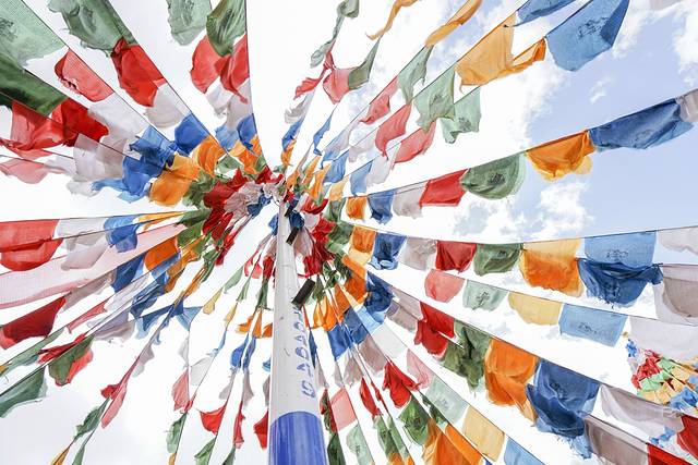 经幡转动归灵魂,佛经颂诵安人心。
