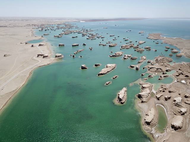 看着车外这片荒凉的地方,一汪清水中的雅丹显得更加的生动,碧绿的湖水在阳光的照射下波光粼粼,更加的生动貌美,千姿百态、各种形状的地貌倒映在湖水中,勾勒出一幅幅迷人的画卷,让人心生向往。