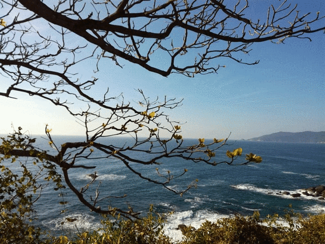 山顶看大海,阳光耀眼,美丽的光影世界。