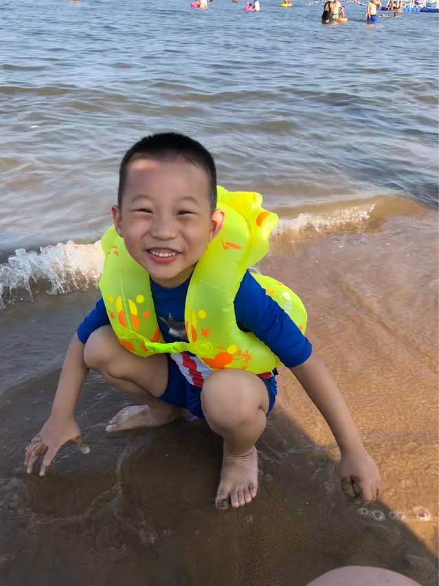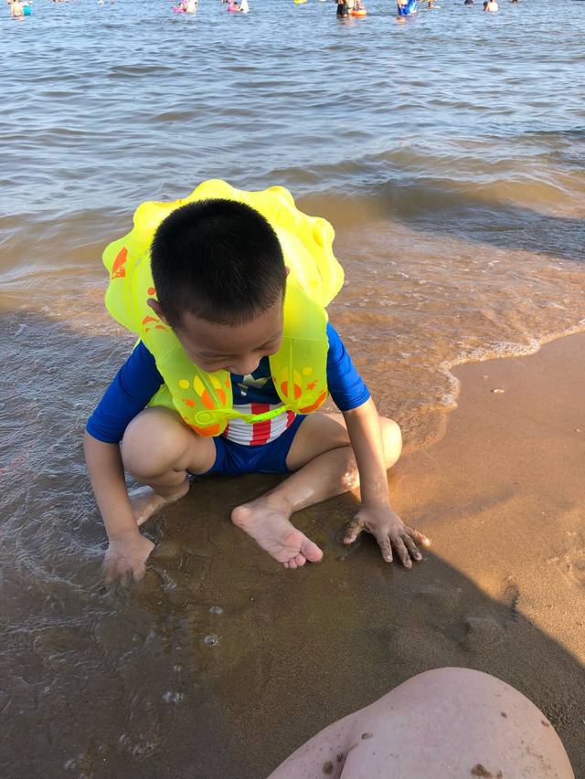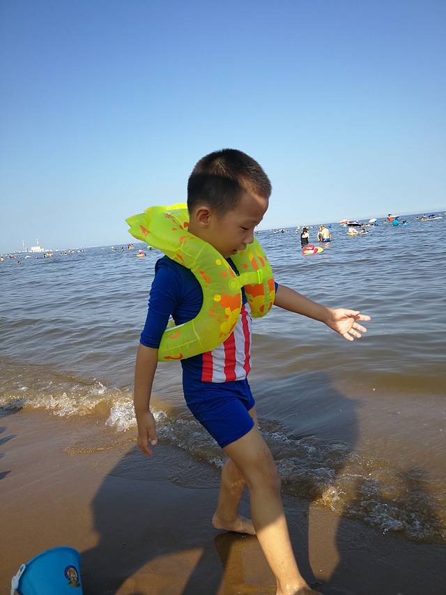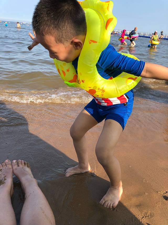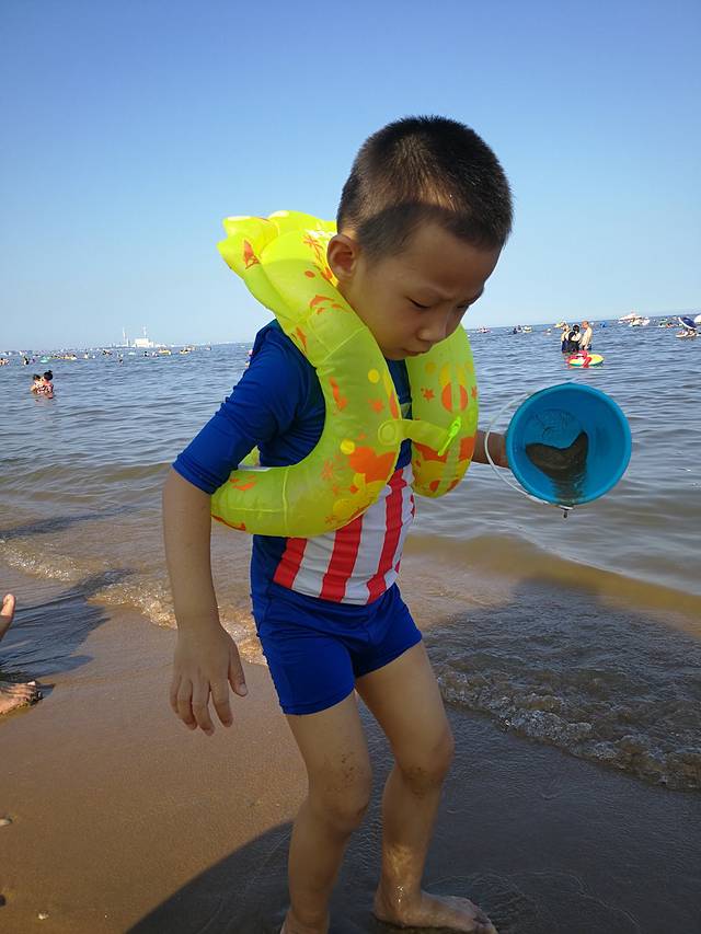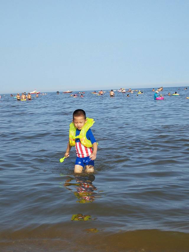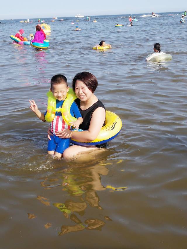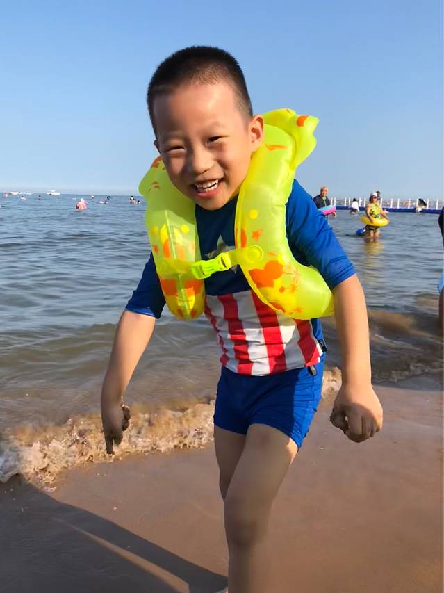 刚开始还不肯下海,后来泡在海里都不愿意出来了