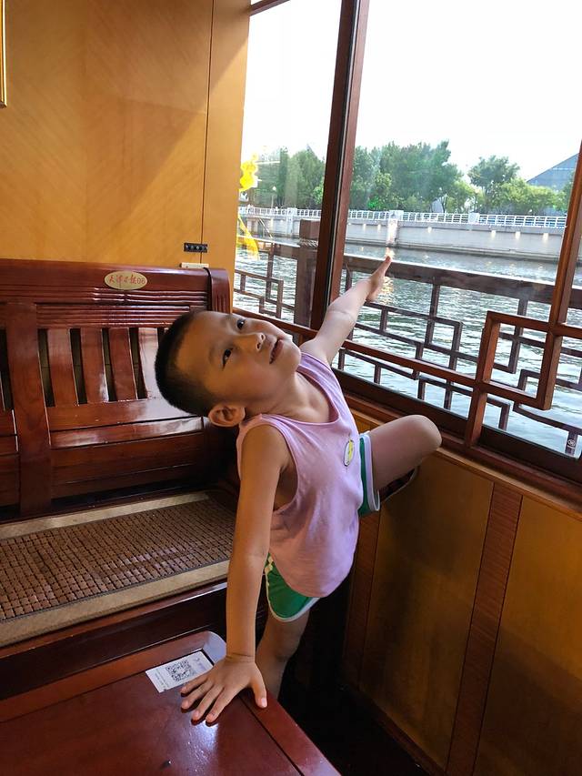 没去坐摩天轮,儿子有点害怕,我也觉得有点无聊!就选了坐船游海河!