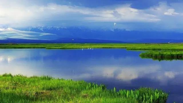 蓝天、白云、绿草、黄花,每一种颜色都有着那种几近原始的高纯度,边歌边泳的天鹅、嬉戏觅食的野鸭、几匹健壮的骏马、几群如云的绵羊。