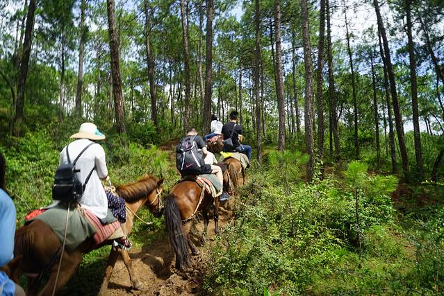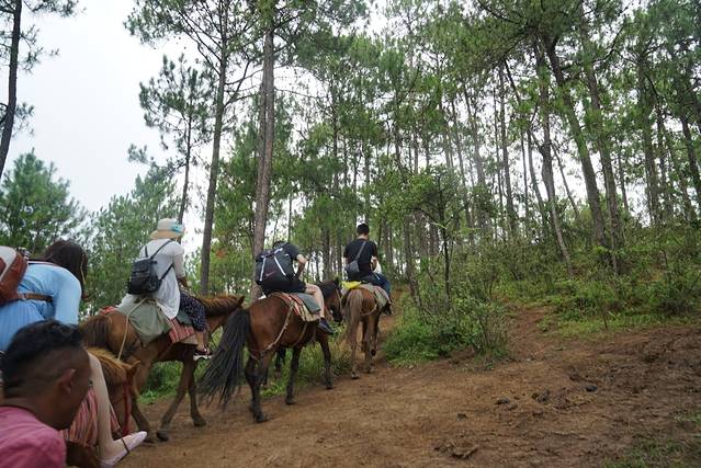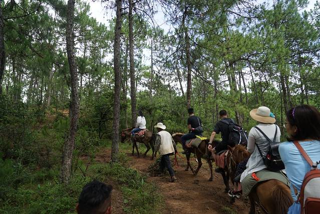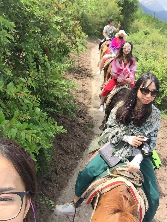 第一次骑马,超级害怕!!!!道路非常险峻,又上坡又下坡的,加上马有时候不走寻常路,这里吃吃草,那里吃吃草,害得我一路心惊胆战!!!幸好牵马的人控制的非常好,还和我们说笑话,唱歌给我们听,让我们缓解一下绷紧的神经。