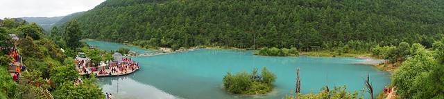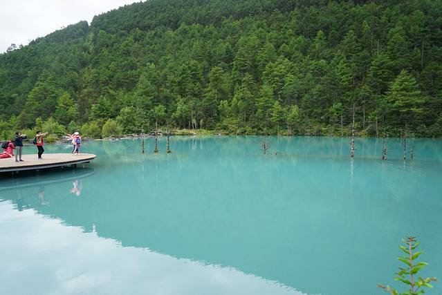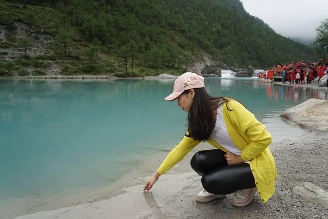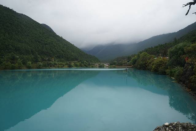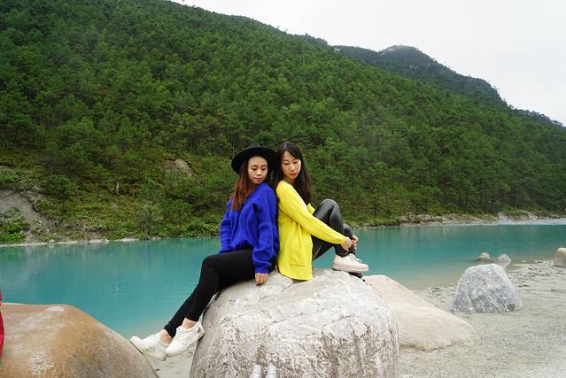 这一天也是报了一日游,518元,包括了来回车接送+午饭+大索道门票+氧气瓶+羽绒服+一瓶矿泉水。景点包括蓝月湖,白水台,甘海子,玉龙雪上。早上我们先去的是蓝月湖。终于给我碰上晴天了!!!要不真的毁了这批照片!