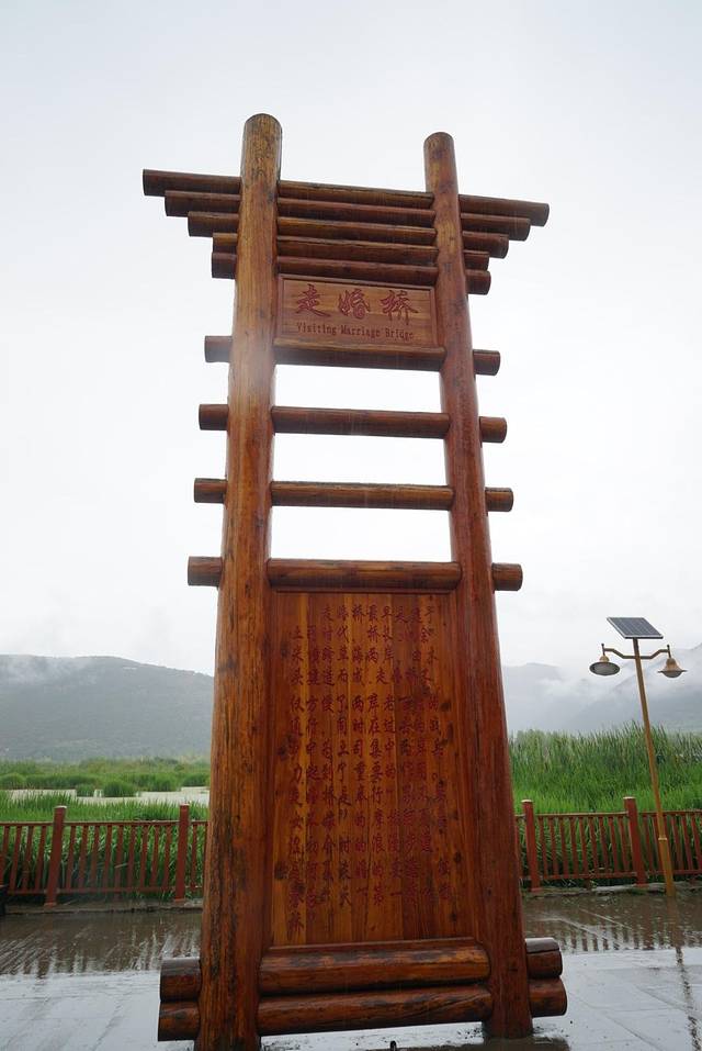 走婚桥是摩梭男女约会的地方, 泸沽湖畔的摩梭人奉行“男不娶,女不嫁”的“走婚”习俗。走婚桥给摩梭人的婚姻添上了神秘色彩。