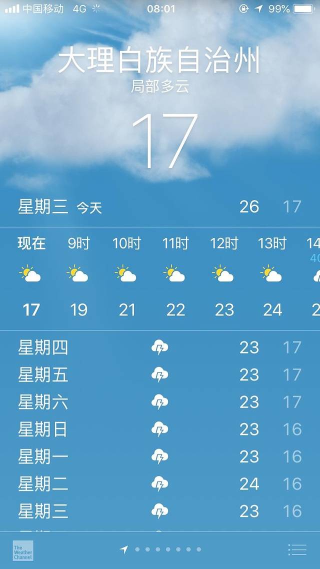 大理晚上的温度和昆明差不多,挺凉爽的,如果晚上出去还得披一件披肩才可以。