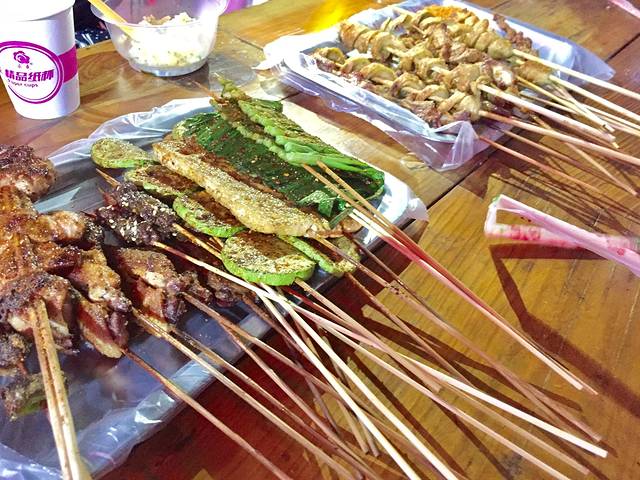 放好行李当然是出来觅食了~~填肚子最重要!酒店附近吃的东西还是比较多,找吃还是挺方便的。闻到烧烤味已经不能自拔了,果断奔去烧烤店。在大众搜了一下,这家评价好点,价格稍贵。味道不错,炒饭超级好吃~