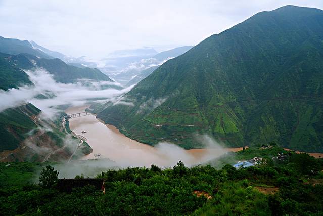 金沙江像一条长蛇蜿蜒流长,长征途中毛主席率领的红军战士是怎样的横渡天险啊!“金沙水拍云崖暖,大渡桥横铁索寒……”