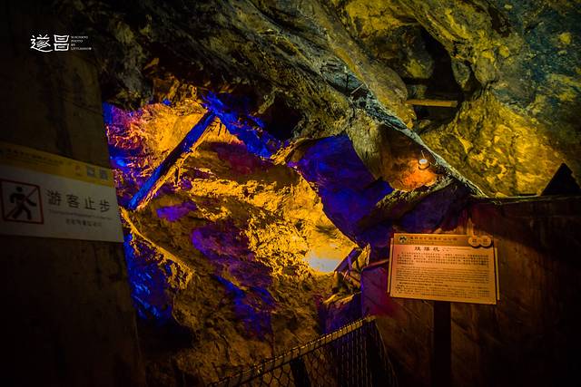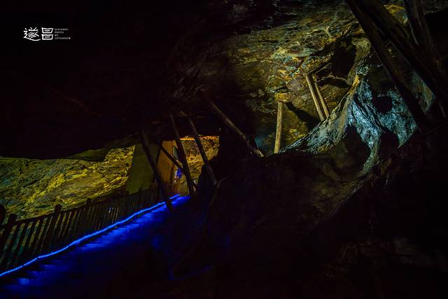 走到矿洞深处光线越来越暗,彩色的灯光让这里看起来更加神秘,如果不是身边有小伙伴,我想我是不敢一个人进来啦,感觉更像是一场探险,沿途可以看到大量的历史遗迹,在旁边的路牌上都有对应的历史解答。