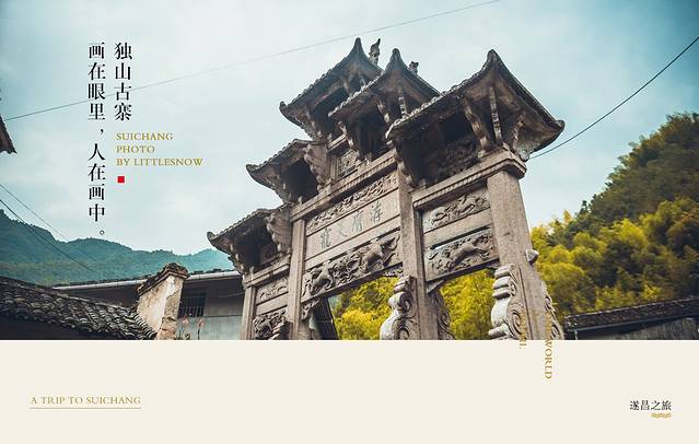 独山村是一座埋在大山里的村子,是遂昌古代闻名的村寨,村子保留着古朴的风貌,村中有明代清代修建的宗祠,明隆庆年间的隆庆石牌坊、明嘉靖年间建立的寨墙等古代建筑。南北两端有寨墙环绕,古道由寨门进出,地形险要。古寨离主紧邻主干道,交通便利,这是来古寨的路,青石铺路,落英缤纷。