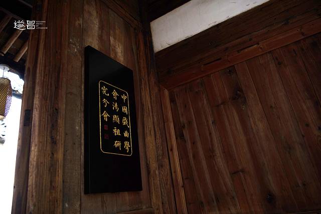 纪念馆的大门是古朴的木质结构,进门后左手边便看到一个黑色的木板,写着“中国戏曲学会汤显祖研究分会”。往里走便是一处拱门,虽然简朴,却很雅致,还有院落里的石槽中飘摇的水草,石头上的青苔,处处都展示着古朴韵味。