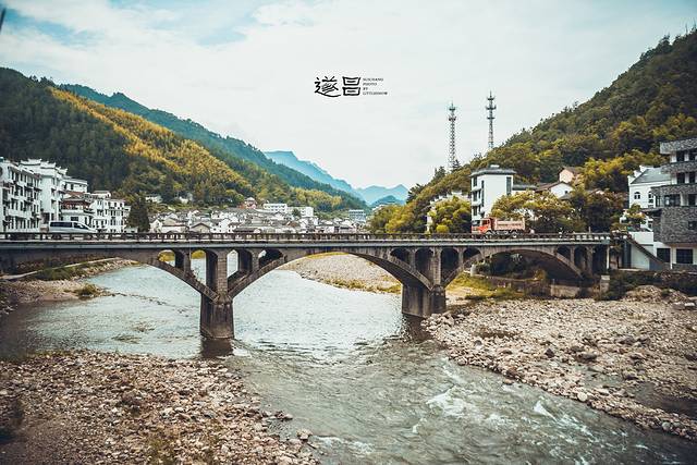 汽车缓缓驶下山脚,沿着乌溪江来到一处古镇,在路上刚好看到正在玩漂流的人一路欢乐,看着安居乐业的村落,想到这里曾是红色革命地,深感幸福生活来之不易。