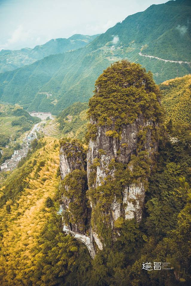 来到山顶可以看到很远的索桥,行走的人非常渺小,而索桥下面更是深渊万丈,在这样巍峨壮观的大自然中,我们人类是多么的渺小。