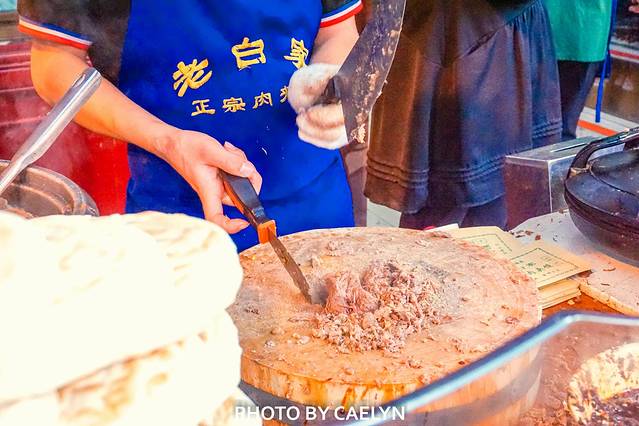 沿着小巷一路逛吃逛吃,我们准备去网红蛋黄肉夹馍打卡!