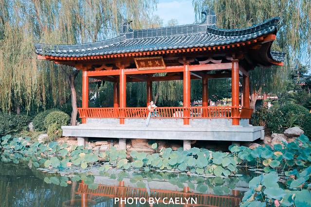 九曲长廊建在芙蓉湖上,连接着望京门与长生殿,脚下是盈盈湖水,身旁是接天碧莲,有时候不得不惊叹于古人的艺术造诣,远在千年前,却能把园林建造的一步一景。