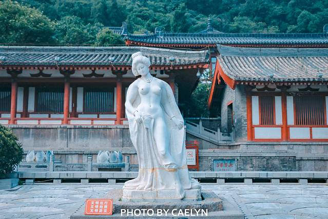 华清池最著名的就是贵妃出浴雕塑了,这里也是人超多,所以想拍雕塑也要等一小会儿呢。