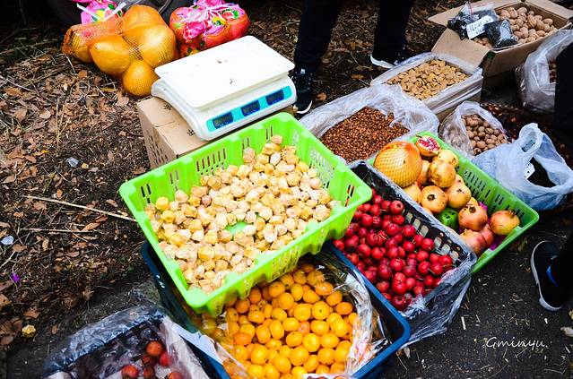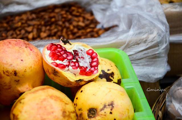路边上也总是会碰到水果摊,有我最爱的“金姑娘”果,还有石榴就连柿子也是迷你得可爱。