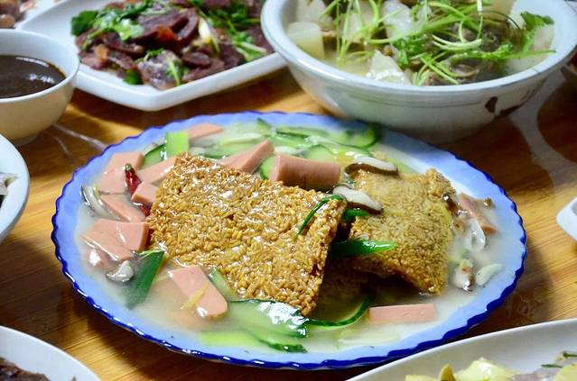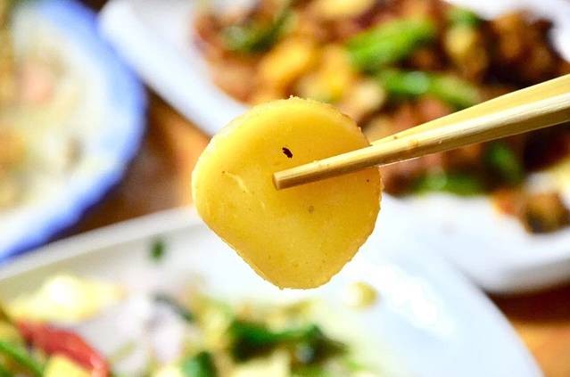 这个看起来像土豆片的家伙,其实是煎的米豆腐,特别好吃~
