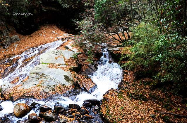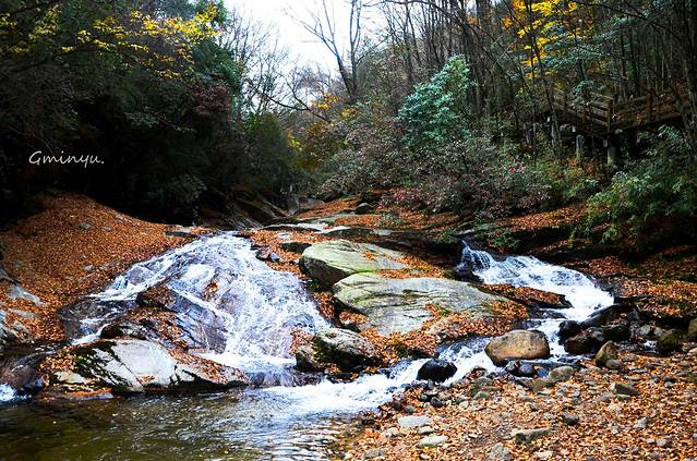 走着走着这天还是下起了雨,瀑布和着雨水落下的声音不会显得吵杂,反倒让人感觉一片静谧。