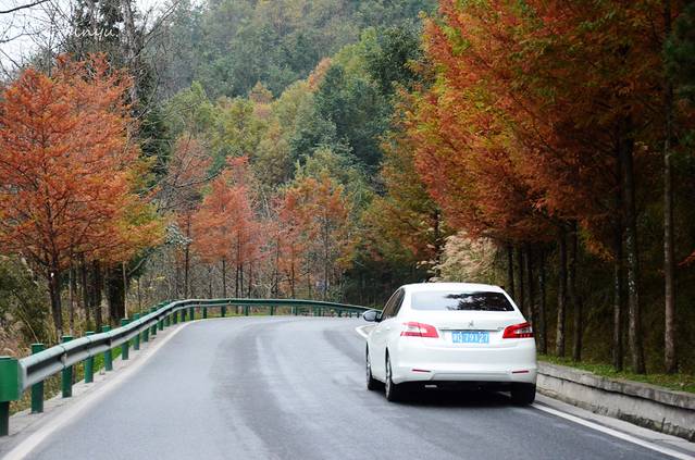 这一路的兜转我在不断的望向山边看着天空,用美景来麻痹自己的眩晕,听着歌心底不断的问自己:下次还会愿意为了看这满山的红坐这么折腾的山路么。