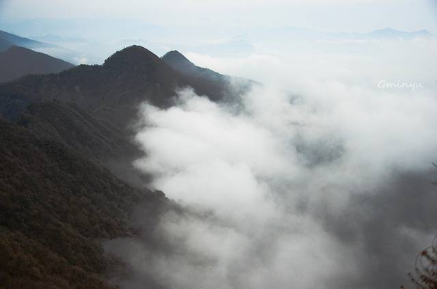 拍了一会,山上开始慢慢起雾,我是真心被这景给迷住了,总觉得像是有仙女腾云驾雾的来着收走我要许下的心愿。这幅画卷让我联想起一句宋词:“敛秦烟,收楚雾,熨江流。” 不过我们收的是蜀雾