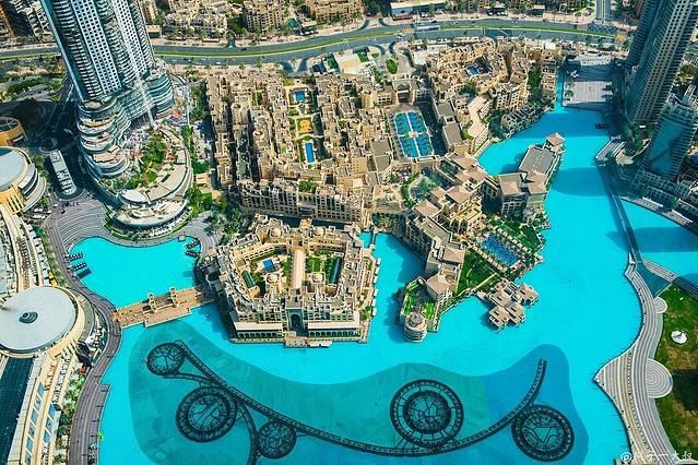 若你是在日落时分来到观景台,可以慢慢感受天际间日夜交替、夕阳西下、华灯初上的美景。参观完坐电梯回到底层,出了迪拜塔可在迪拜塔前方的人工湖畔观赏一场全世界最大的美妙梦幻的音乐喷泉,喷泉最高可以喷到150米,相当于一栋50层楼的高度。