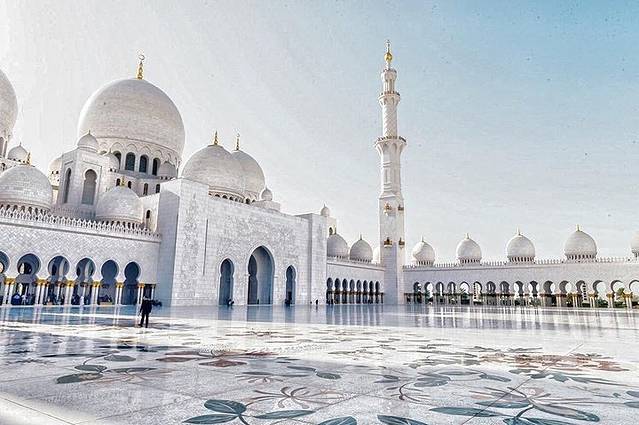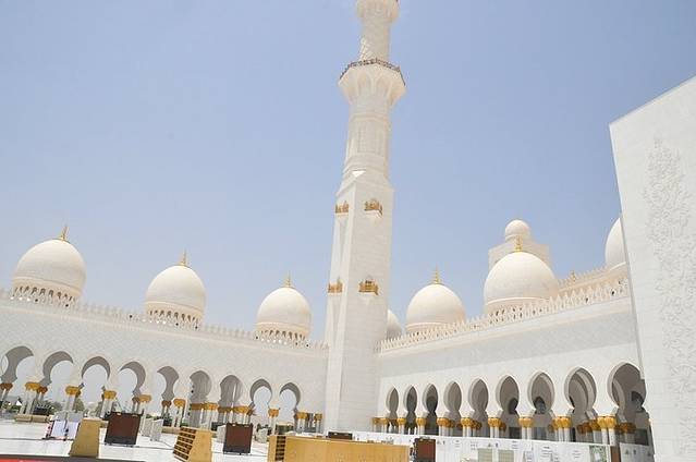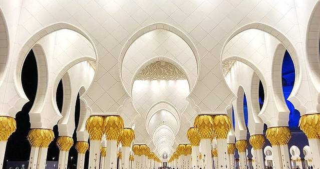谢赫扎耶德清真寺也叫阿布扎比大清真寺,是为纪念阿联酋第一位总统而建造的。这座清真寺以豪华著称,仅黄金就用去了46吨,汉白玉砖墙更是不计其数,水晶吊灯数万盏,据说建设总花费约55亿美元。寺中的巨型地毯和水晶镀金吊灯均为世界之最。