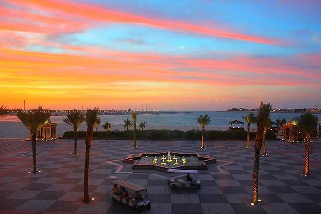 酒店与阿联酋总统府仅一街之隔,拥有1300多米长的黄金海岸线。从酒店内还可以远眺对面的阿提哈德大厦等繁华胜景。