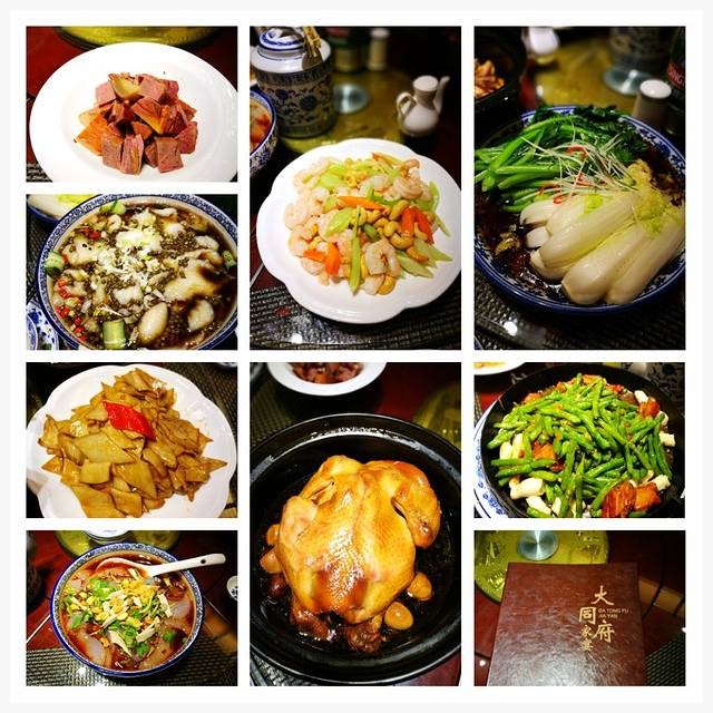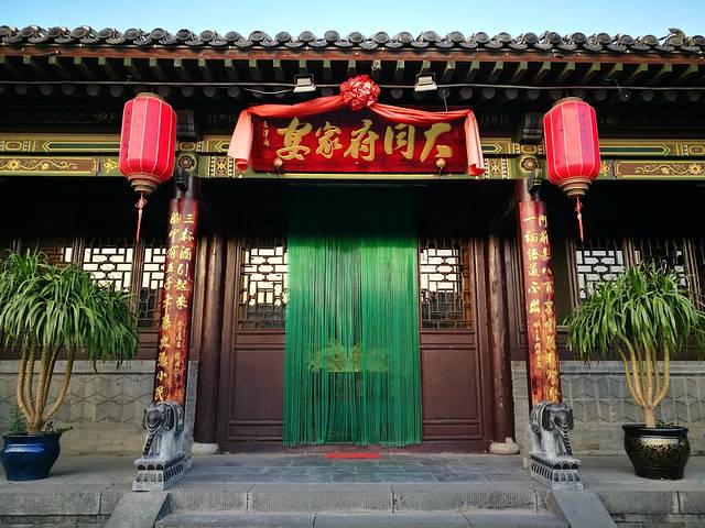 网上最有名的是风凌阁,但是我们来得晚,订不到位子。听说性价比不高,但是环境非常好。我们另外订的是大同府家宴。环境也不错,古色古香,像是在一个古老的庭院里吃饭。挨着古城墙,准备吃完去逛逛。