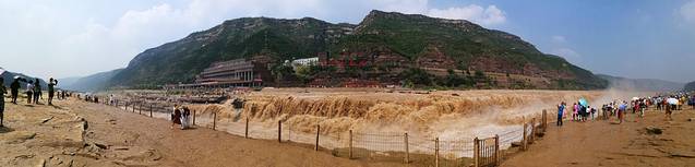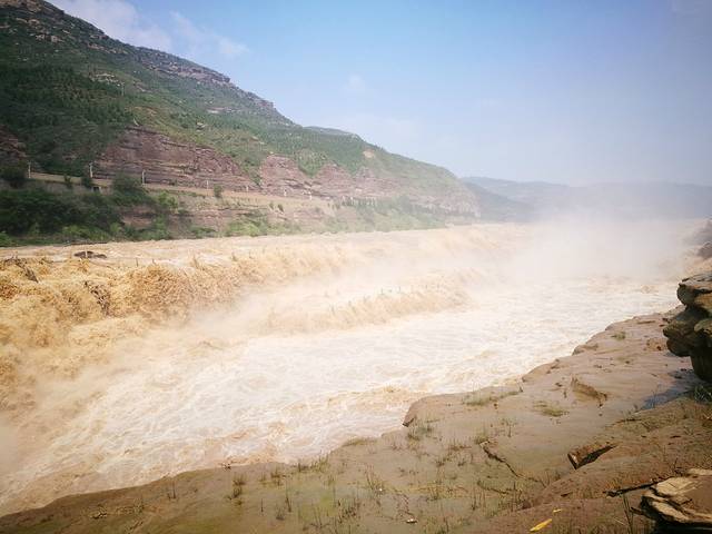 看黄河,怎能不看壶口。壶口瀑布,票价100元。河对面,几十米外,就是陕西的地界了,对面一样有大批游客在看瀑布。气势磅礴,配上《黄河大合唱》,让人激情澎湃。学着电影《黄河绝恋》里摆个pose,双手侧举,闭目仰头,咔嚓拍一张,来个永久的纪念。我家儿子还拍了个视频,背对黄河水,唱着《保卫黄河》呢。