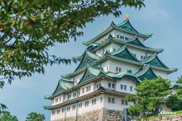 关原之战后,一统天下的德川家康、织田信长曾经的出生地,废城那古野城为址,为自己的九儿子修建名古屋城,并以天下普请为名,向众大名发出了协助筑城的命令。加藤清正、福岛正则等人为示忠诚纷纷出力,不到两年时间就建成了这座德川家三代世袭的名古屋城,现在在名城公园内还立有加藤清正搬运石块的铜像。 名古屋城经二战战火损毁,1959年修复了幸存的建筑,虽已不复当年旧貌,但城堡的规模仍可一窥,加之其内的2000多株樱花树,花开时节所有建筑掩映于粉烟之中,景象动人。
